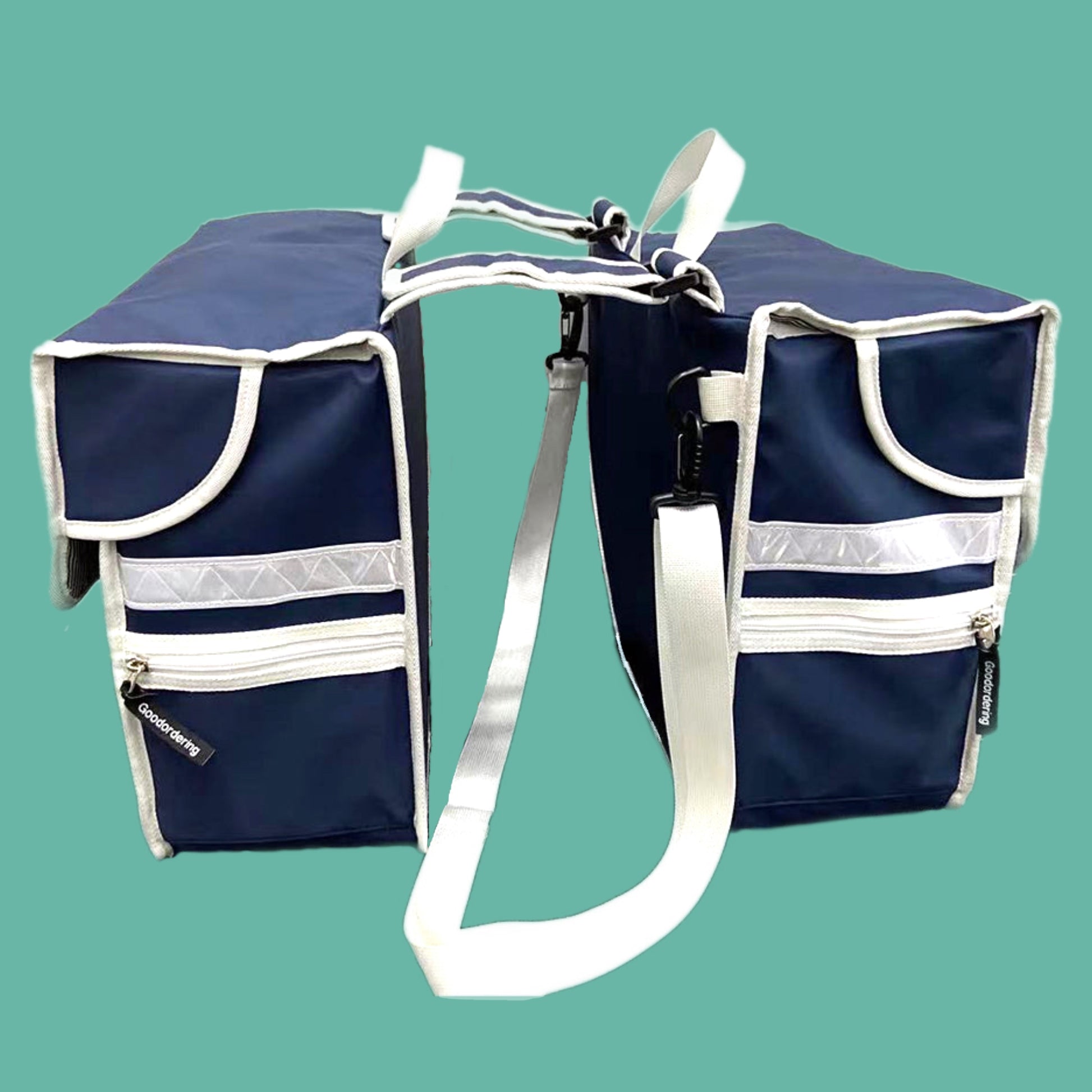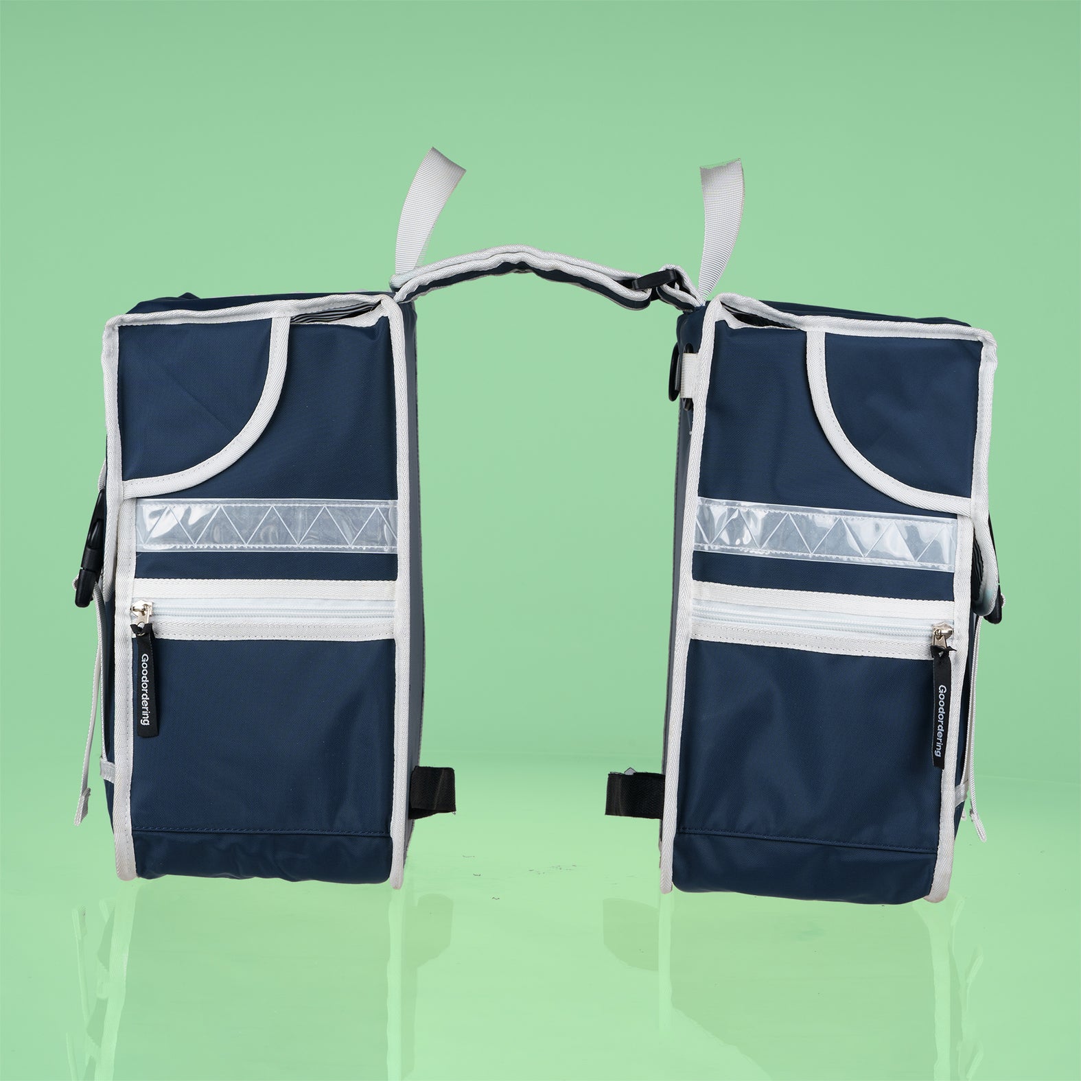 An extra volume double pannier bicycle luggage bag that is still functional when you take it off the bike! It is made from recycled materials like many of the other Goodordering bag range. Balance your load with this extra spacious Goodordering set of bags - use singularly or together as a pair.