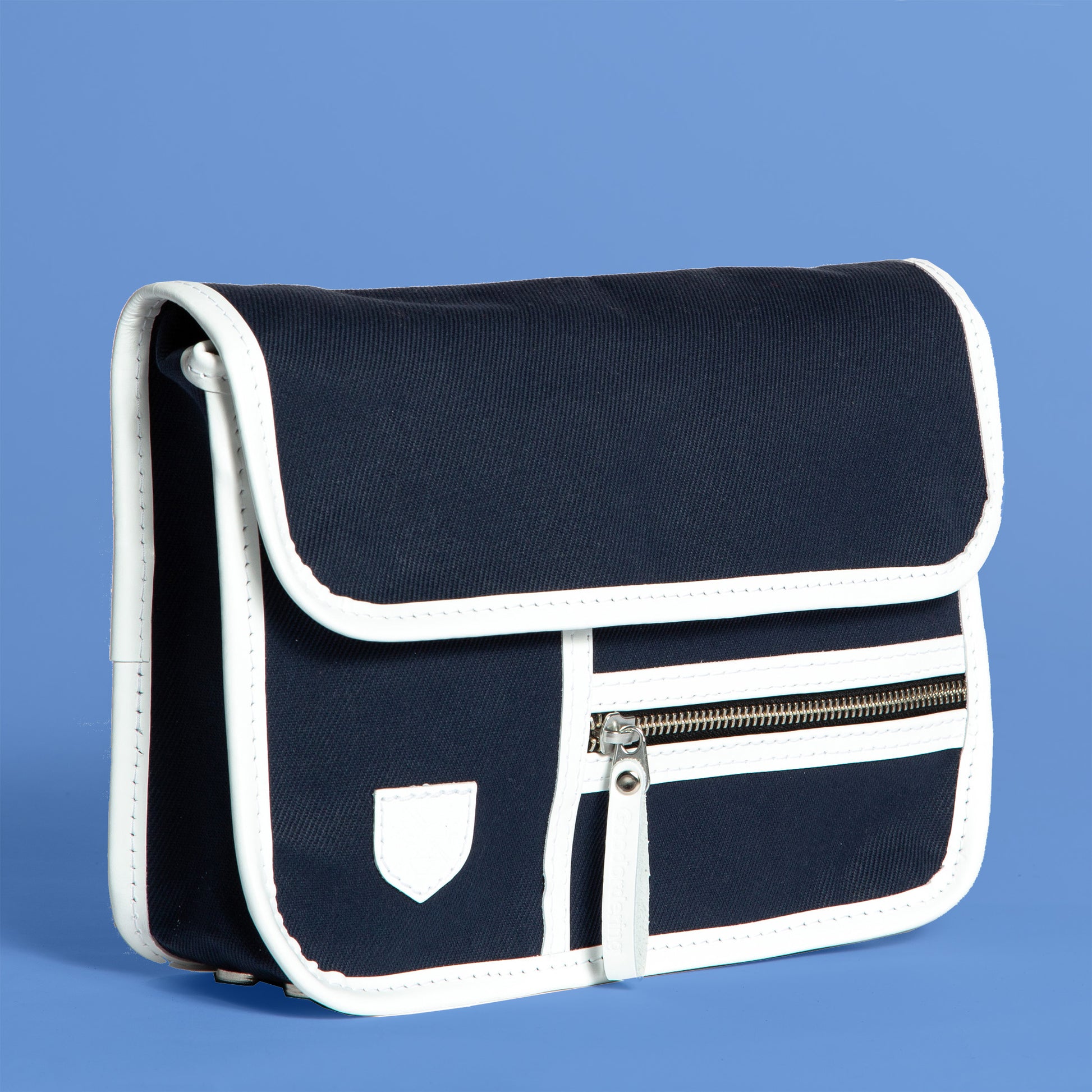 Named after my wife Mia, this very special leather hand bag has been hand crafted in Cumbria in the north of England. The body fabric is a dark inky navy blue which is almost black.
