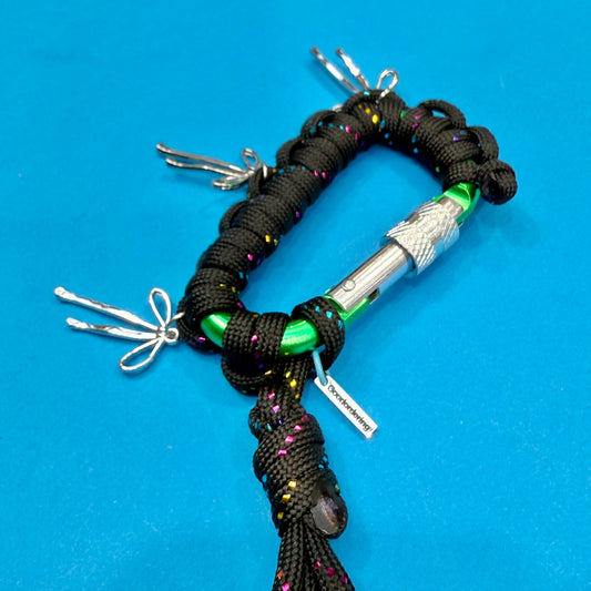 Paracord wrapped carabiner green spikes