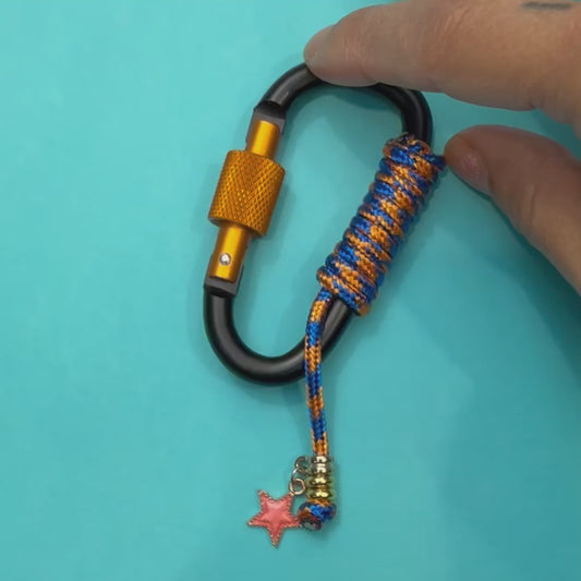 Paracord wrapped carabiner org-blue