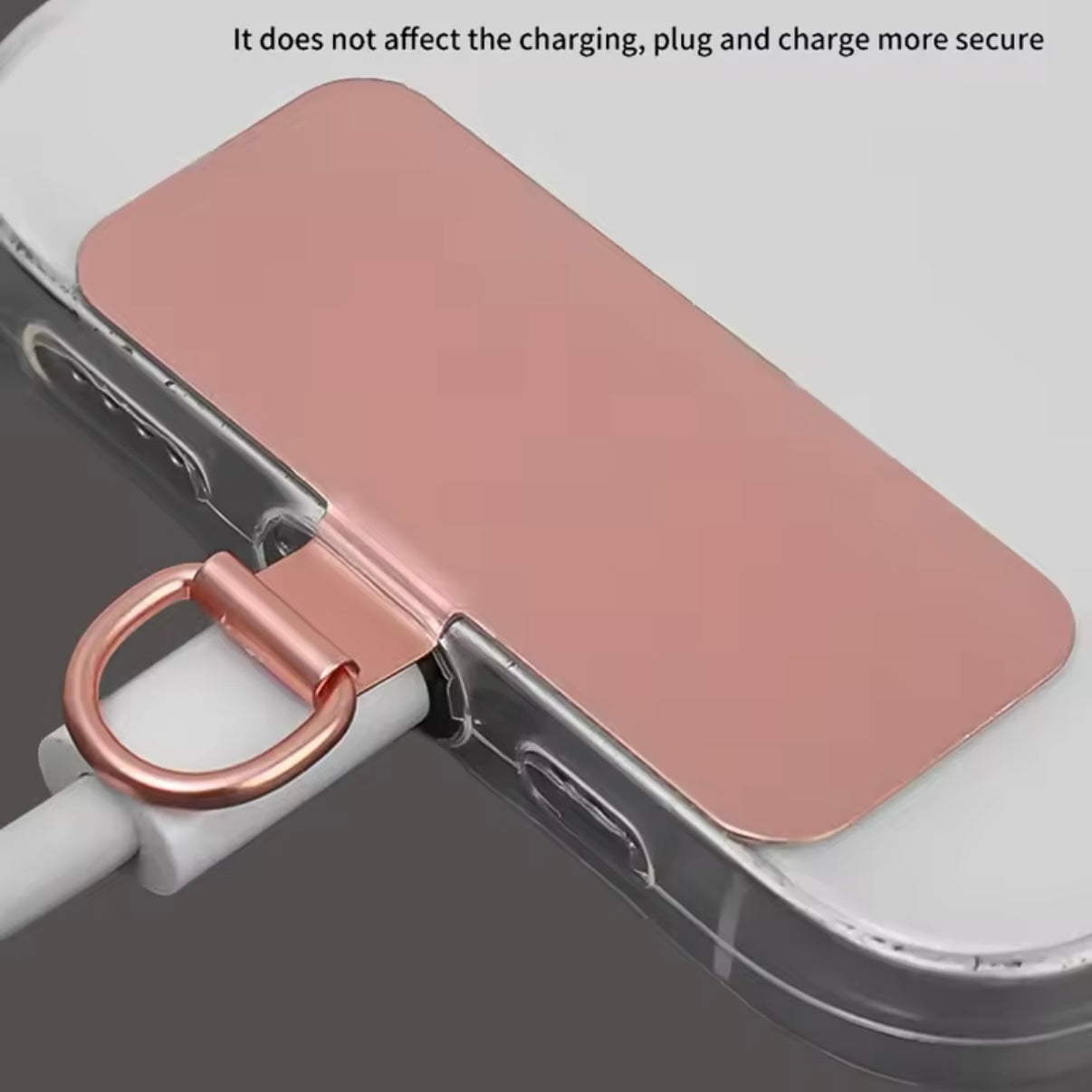 Adjustable cord phone strap. Flat end goes into your existing phone case and small tab pokes out of charging hole and attached to strap using clip.