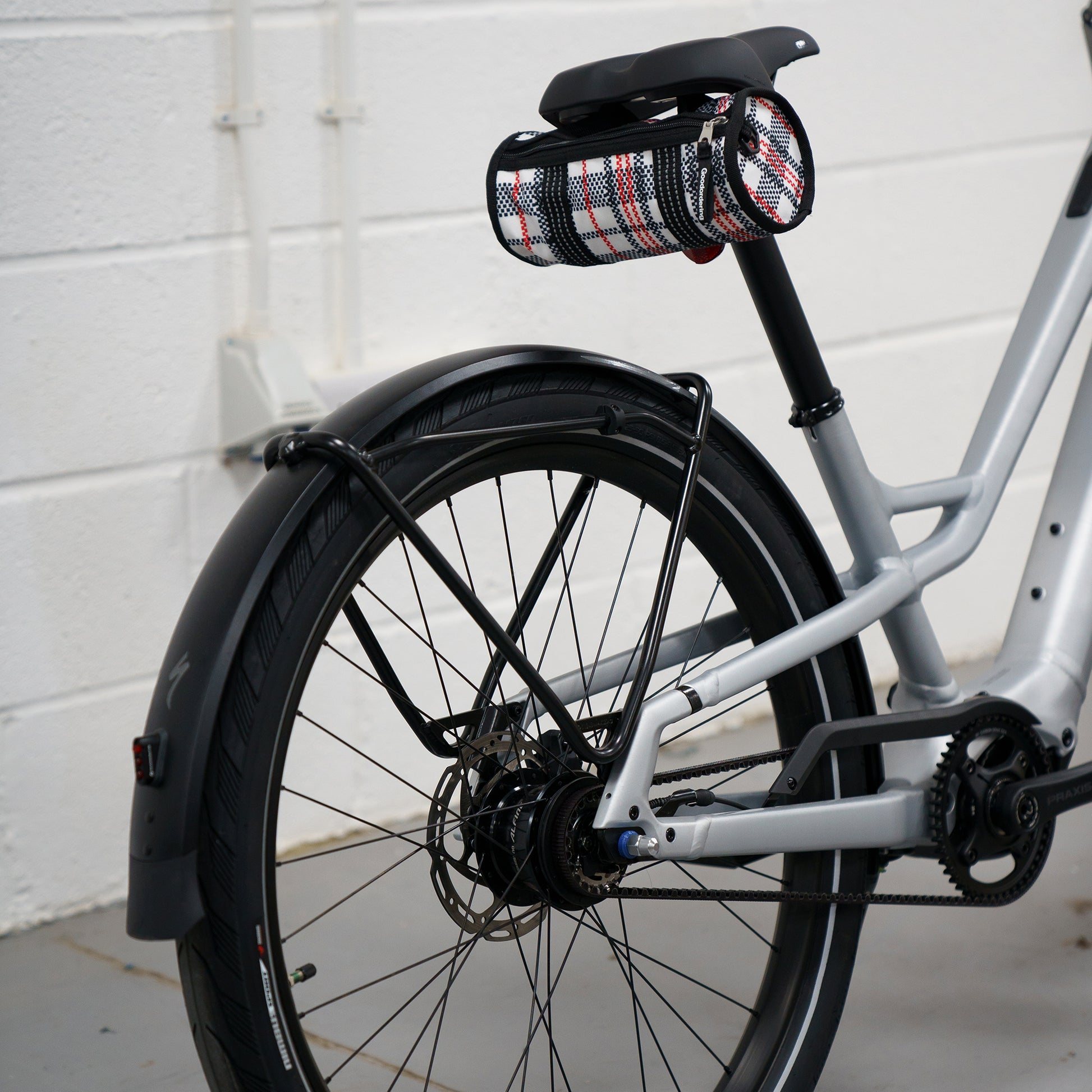 This tube saddle bag's velcro strap feature allows this bag to be attached to almost anything. When it is not attached to the bicycle cross bar or saddle of your choice you can wear is across your body using the detachable shoulder strap.