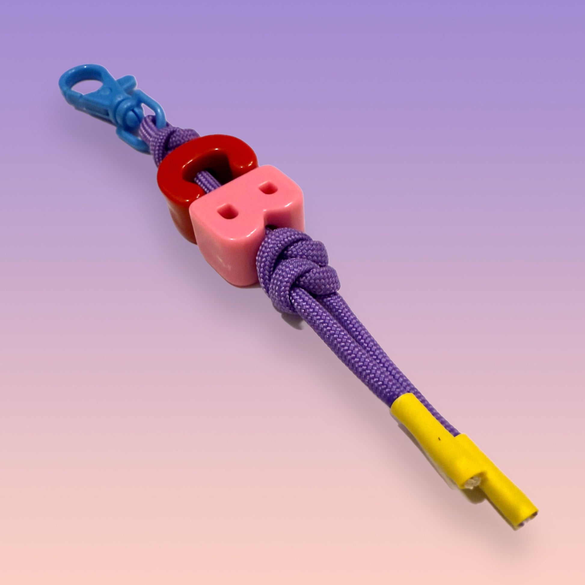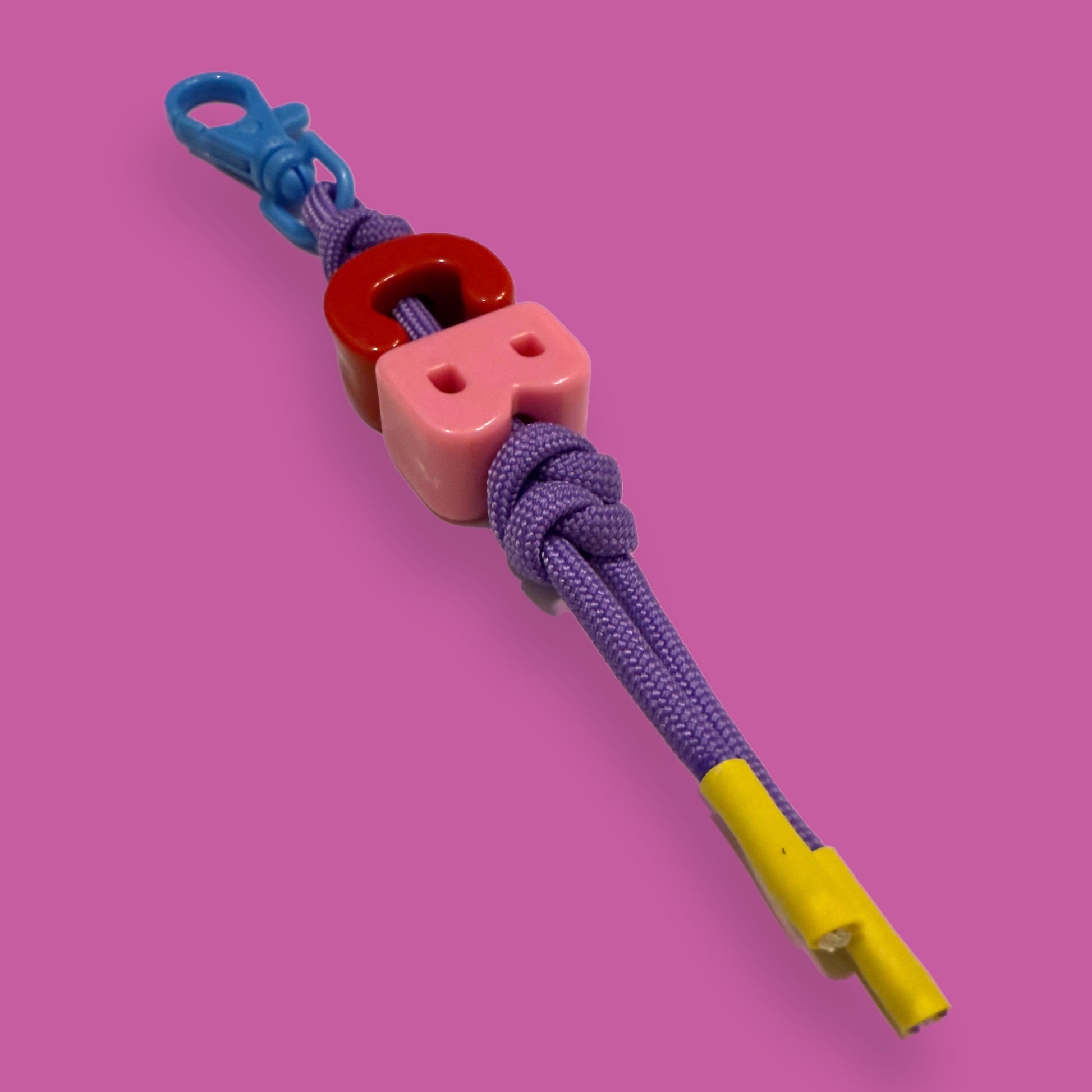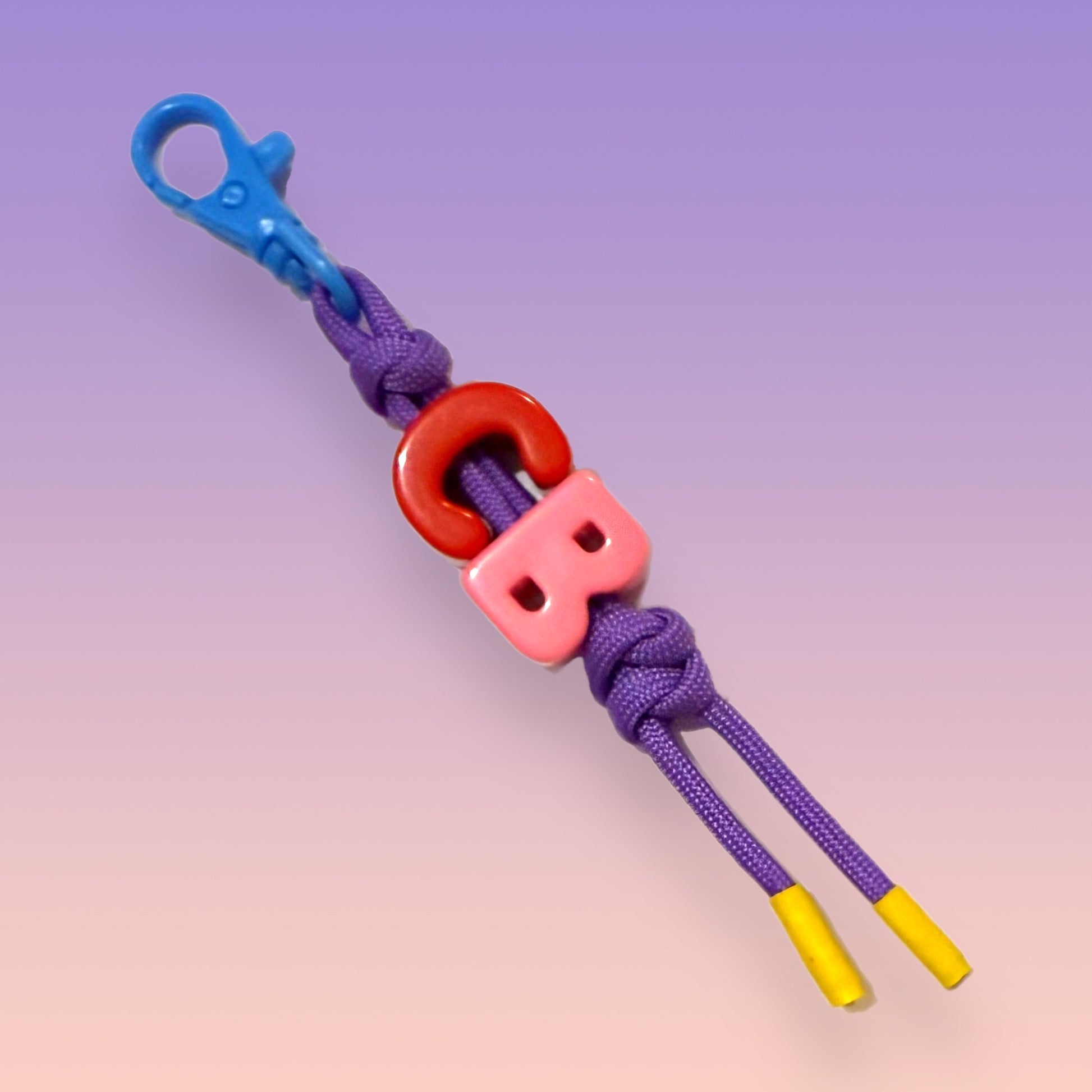 Hanging Bag charm or keyring with plastic chunky letters with your name. Personalisable, provide your initials in the order notes at checkout up to 3 letters.