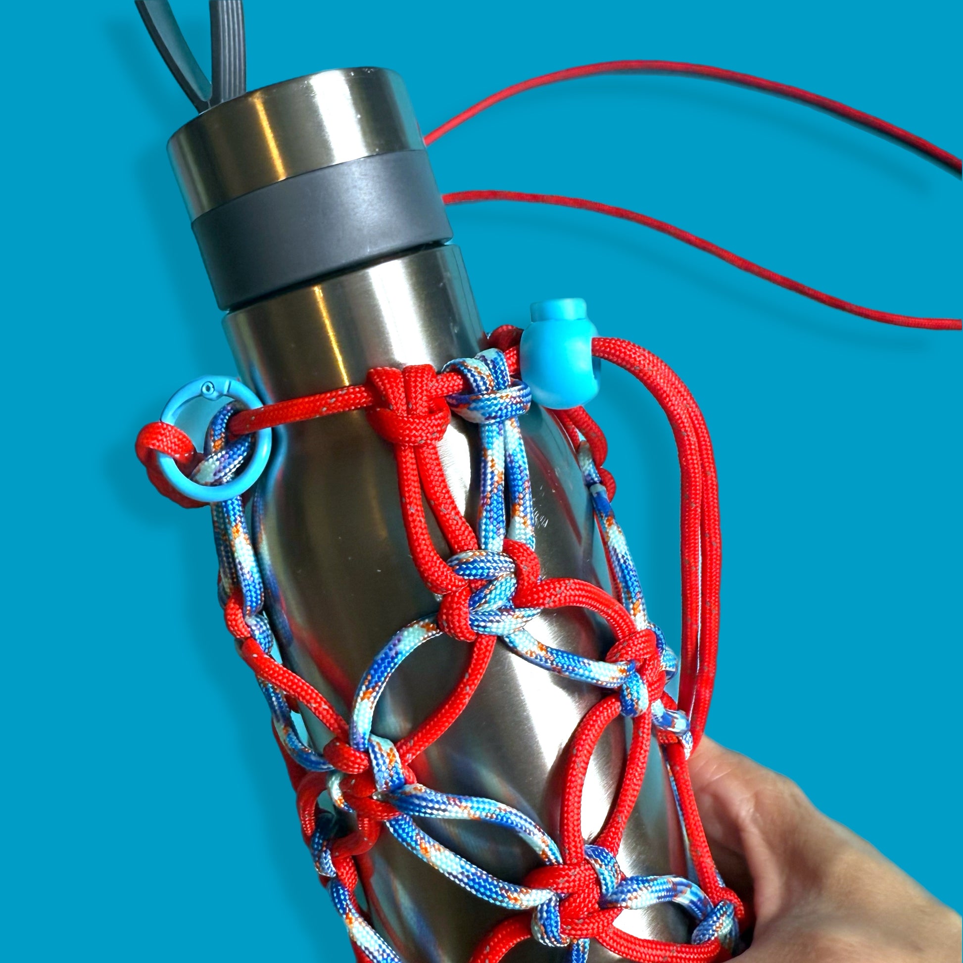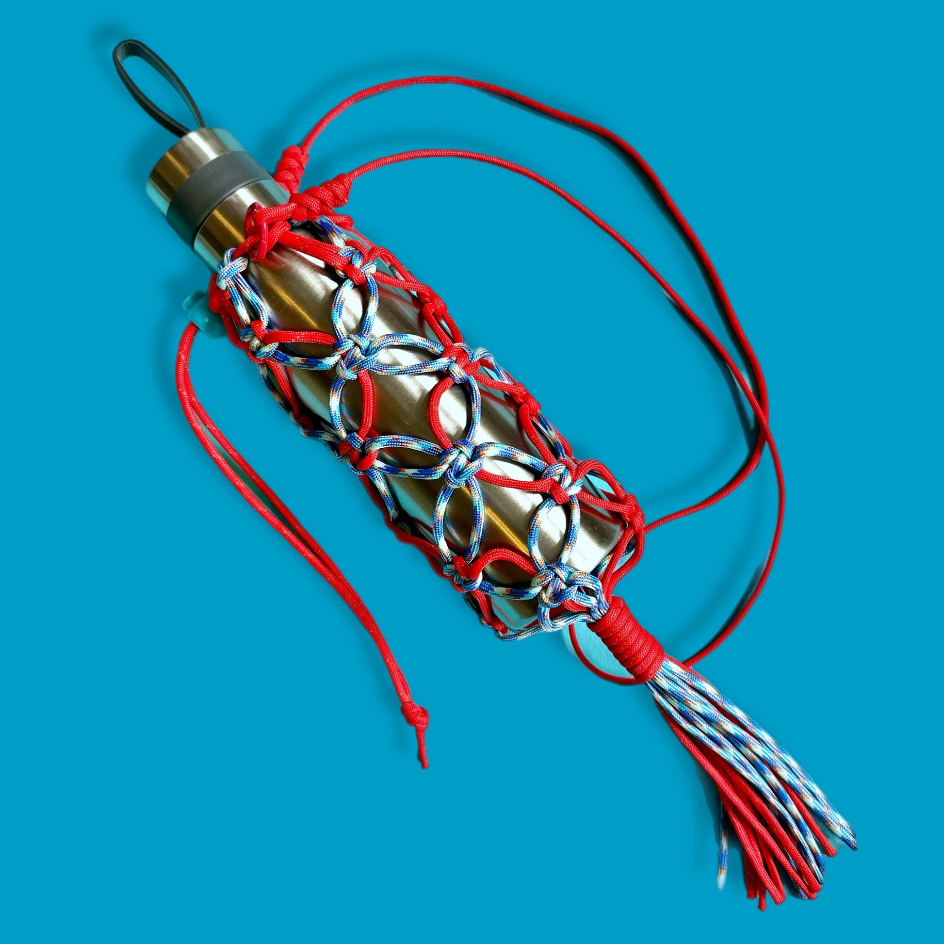 Macrame para cord bottle bag red blue