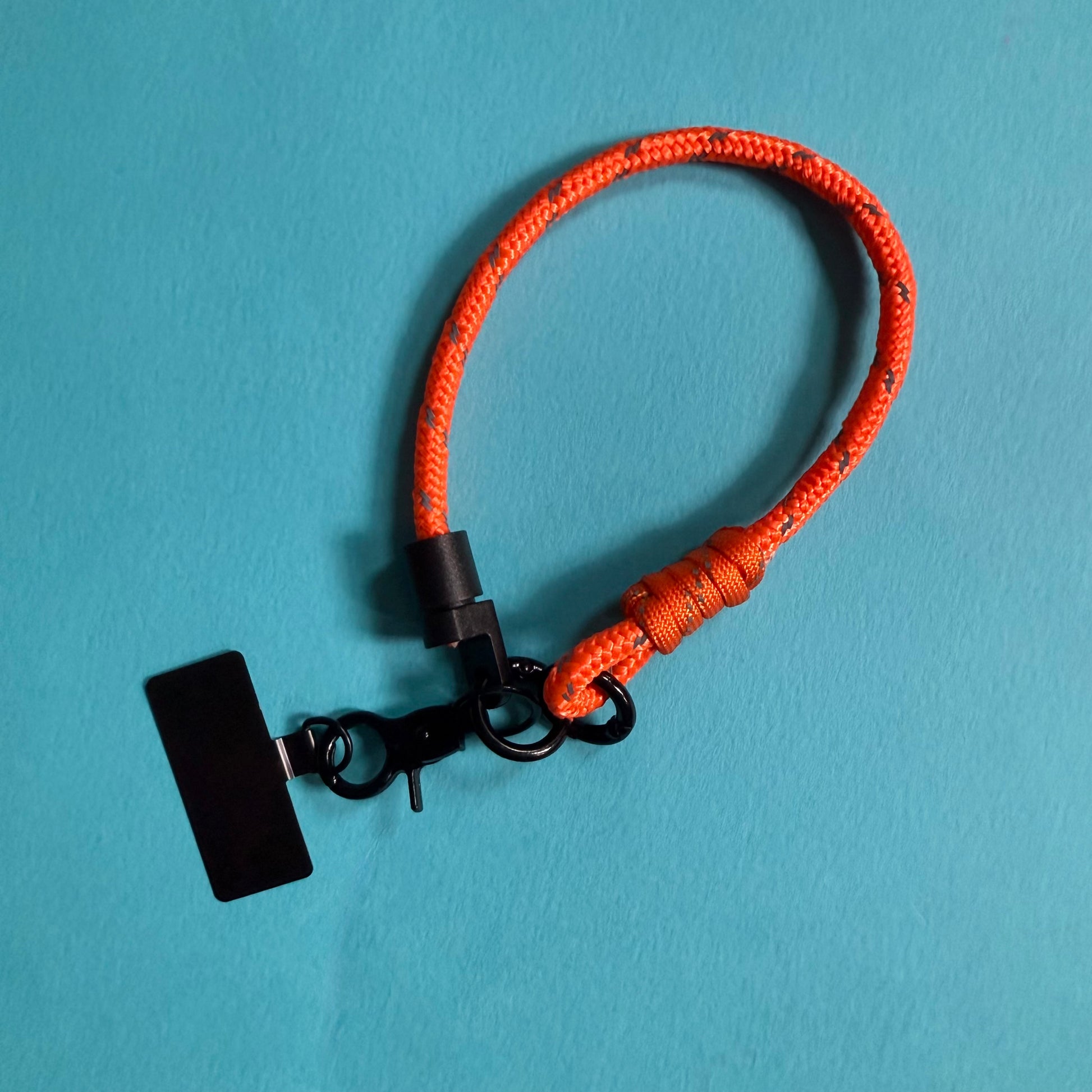 Adjustable 6mm dia paracord phone strap. Flat end goes into your existing phone case and small tab pokes out of charging hole and attached to strap using clip.