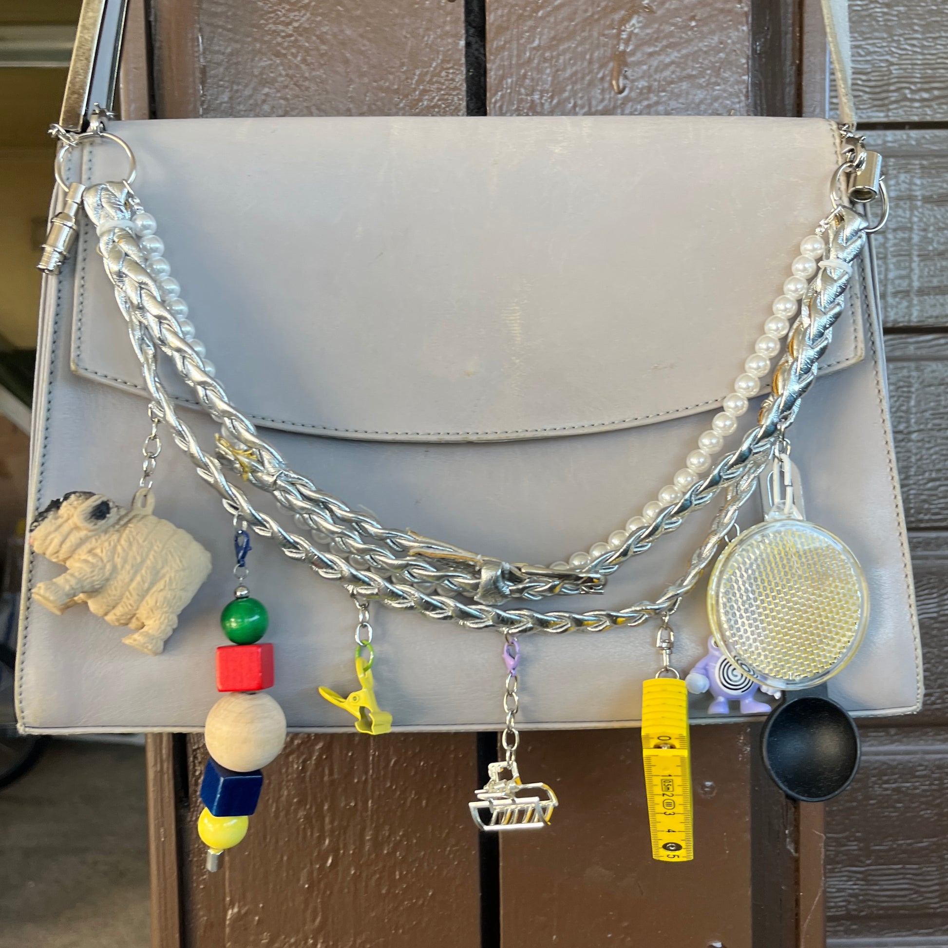 Designed and made in sweden using a mixture of vintage and new items up cycled and combined to form this new nostalgic “junk”. Put it on your bag or wear it on your body. each piece is one off.
