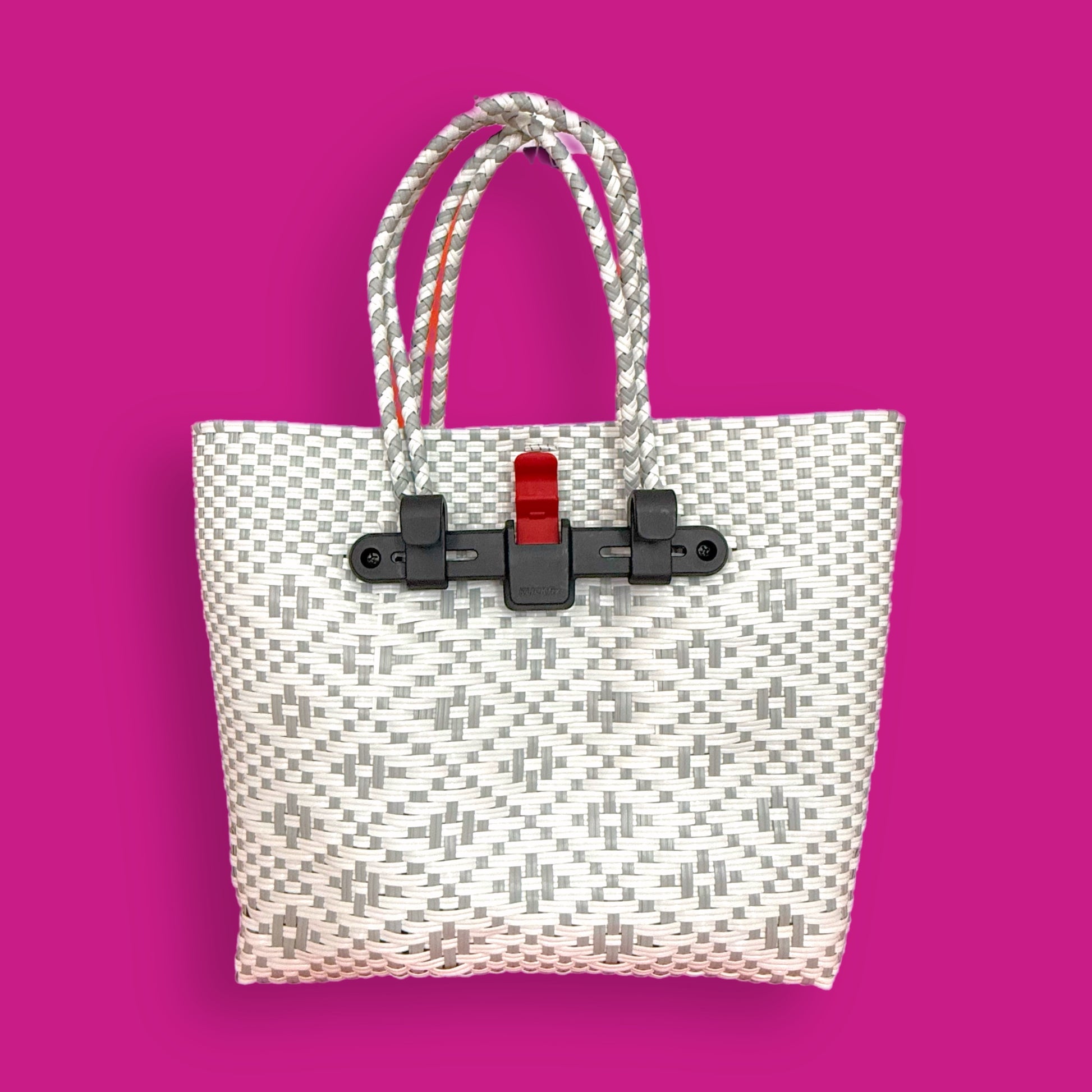 Personalise your bag with this summer basket. Made from up-cycled woven basket, this bag features double handles and a stiff structure. A perfect basket bag for use as a summer hand bag.