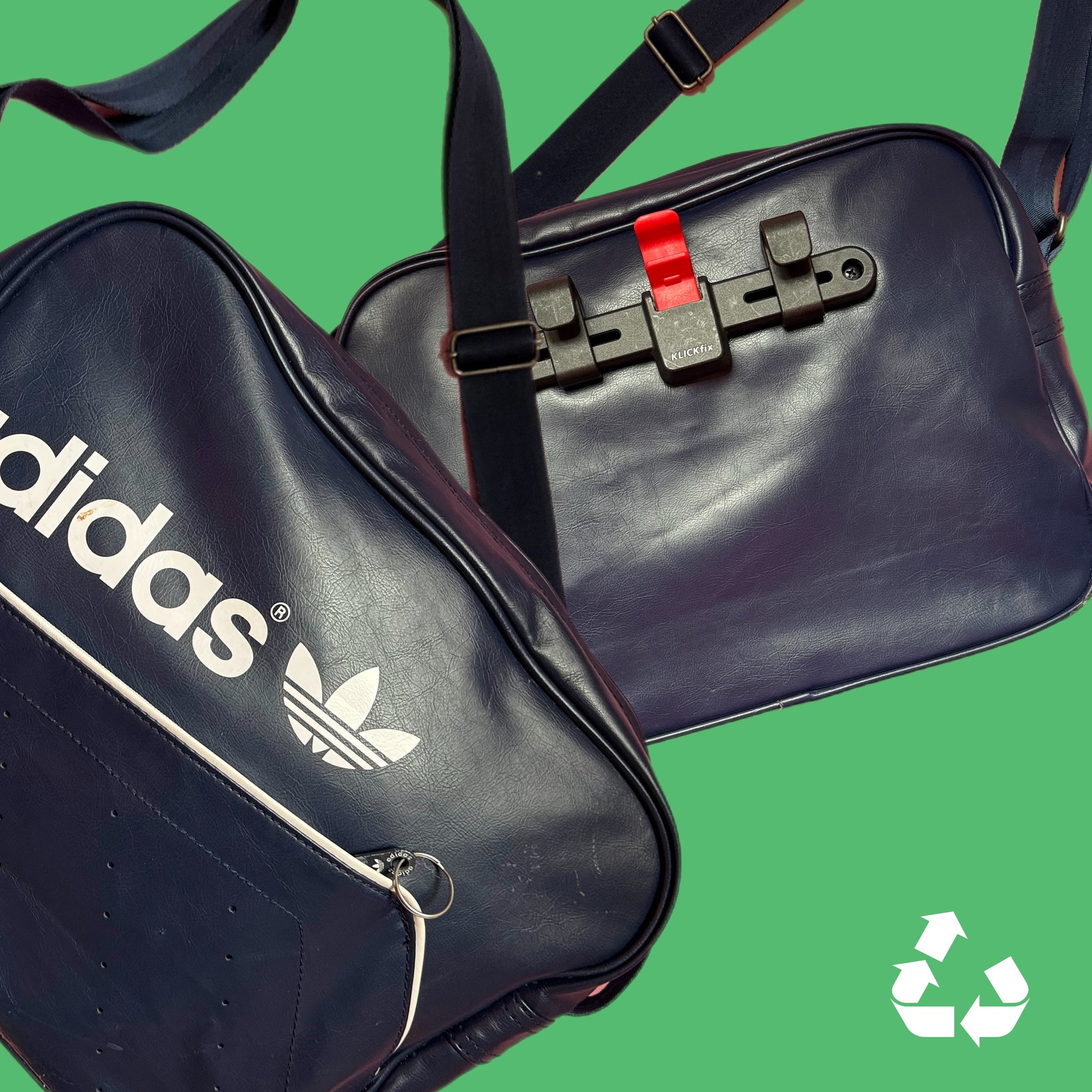 Made from up an upcycled retro sports messenger bag. This small range of upcycled messenger bags from a retro messenger bags. These are one off unique pieces sourced and upcycled. They still have the shoulder straps in tact so you can wear them over your shoulder when you are off your bike.
