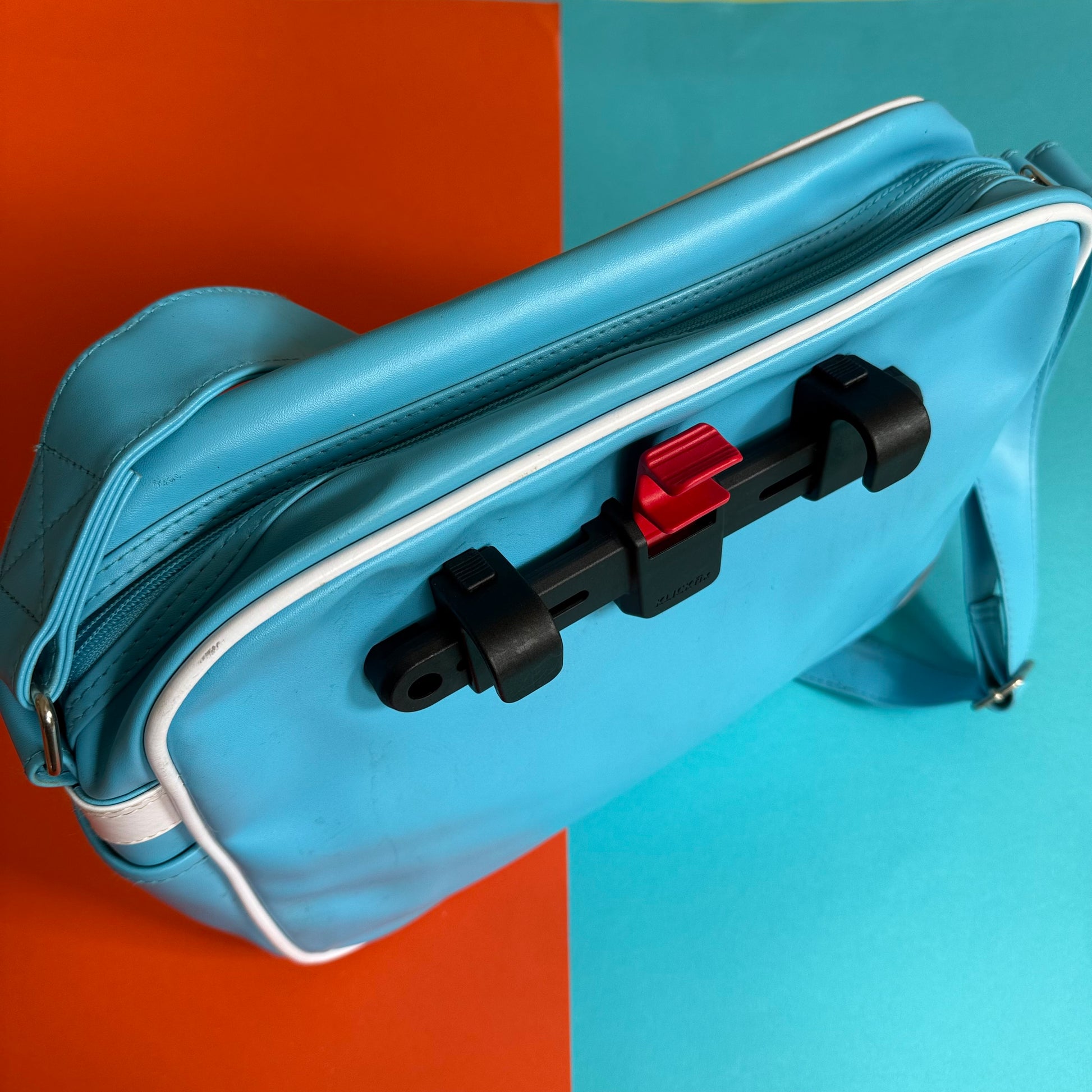 Made from up an upcycled retro sports tote bag. This small range of upcycled messenger bags from a retro messenger bags. These are one off unique pieces sourced and upcycled. They still have the shoulder straps in tact so you can wear them over your shoulder when you are off your bike.