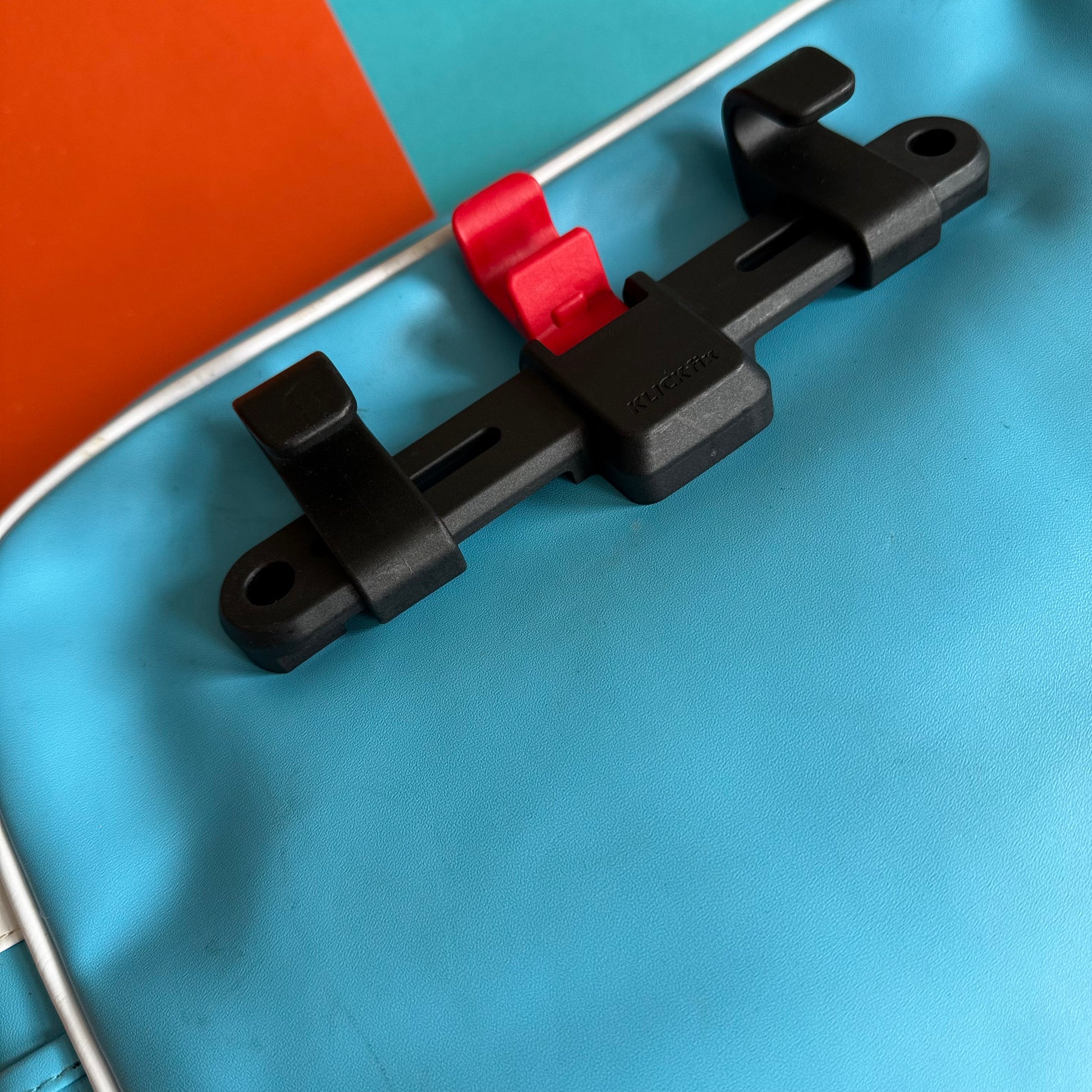 The hardware that attaches it to the pannier rack is from German brand Rixen Kaul, so its highly engineered clips will ensure that it attaches securely to any pannier rack. The width of the clips are horizontally adjustable so you can ensure that it will be a good fit to your bike.