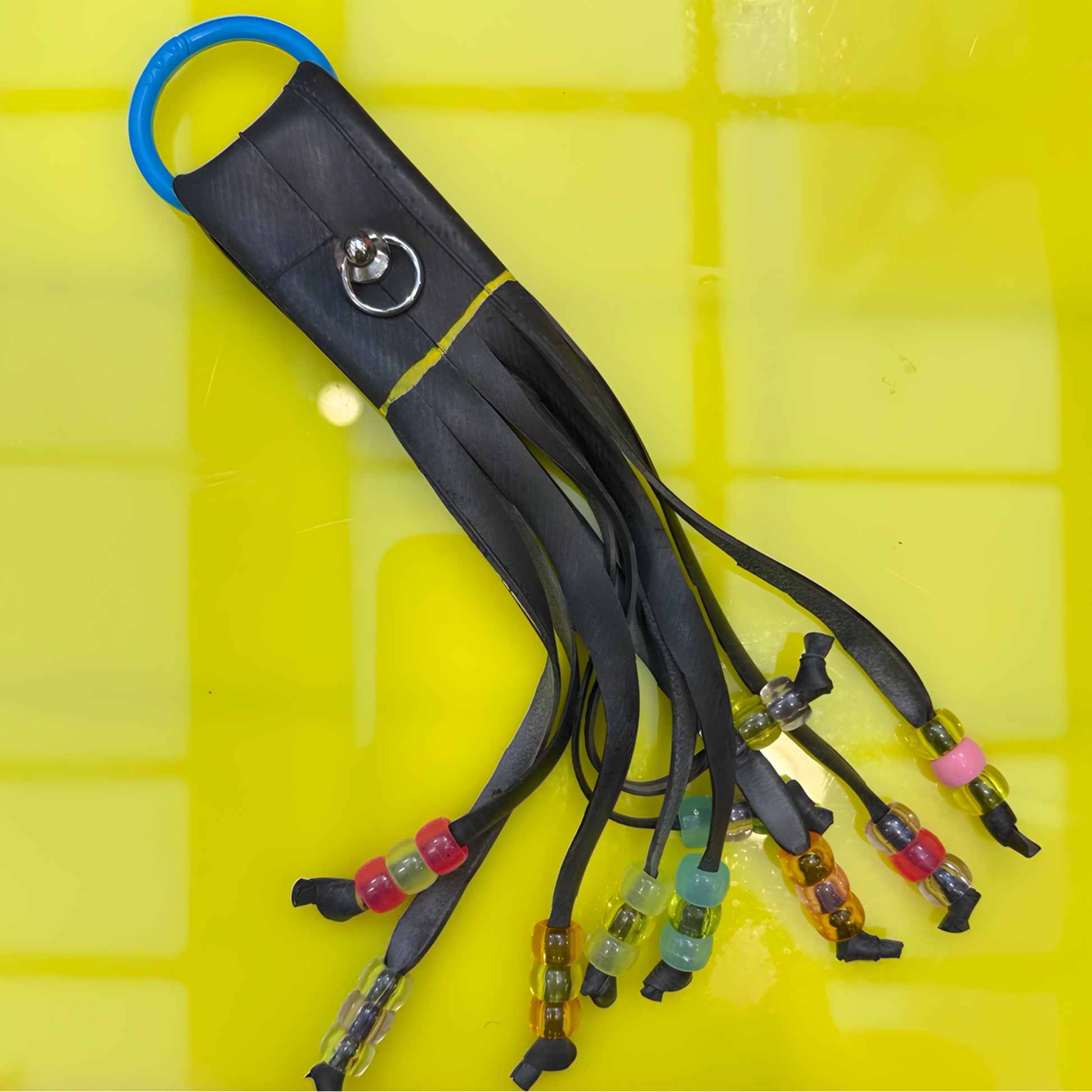 This assortment of keyrings and small accessories are made in creative workshops teaching children to cycle. The inner tubes are kindly donated by local local Bicycle stores in Hackney.