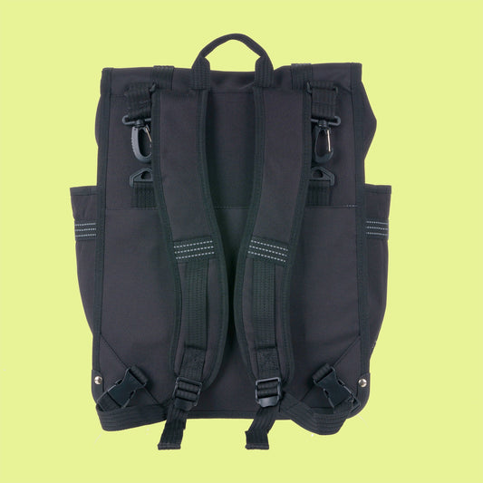 Eco nylon Monochrome Rolltop Backpack Black pannier two in one