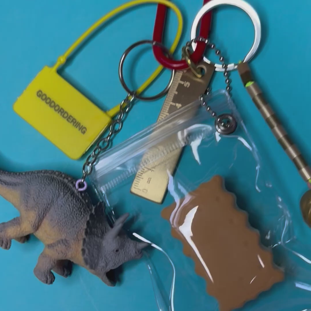Eclectic bag charm keyring lots of fun elements attached. A soft retro vibe of cool primary colours to compliment any bag or outfit. Use together or separate into individual charms.