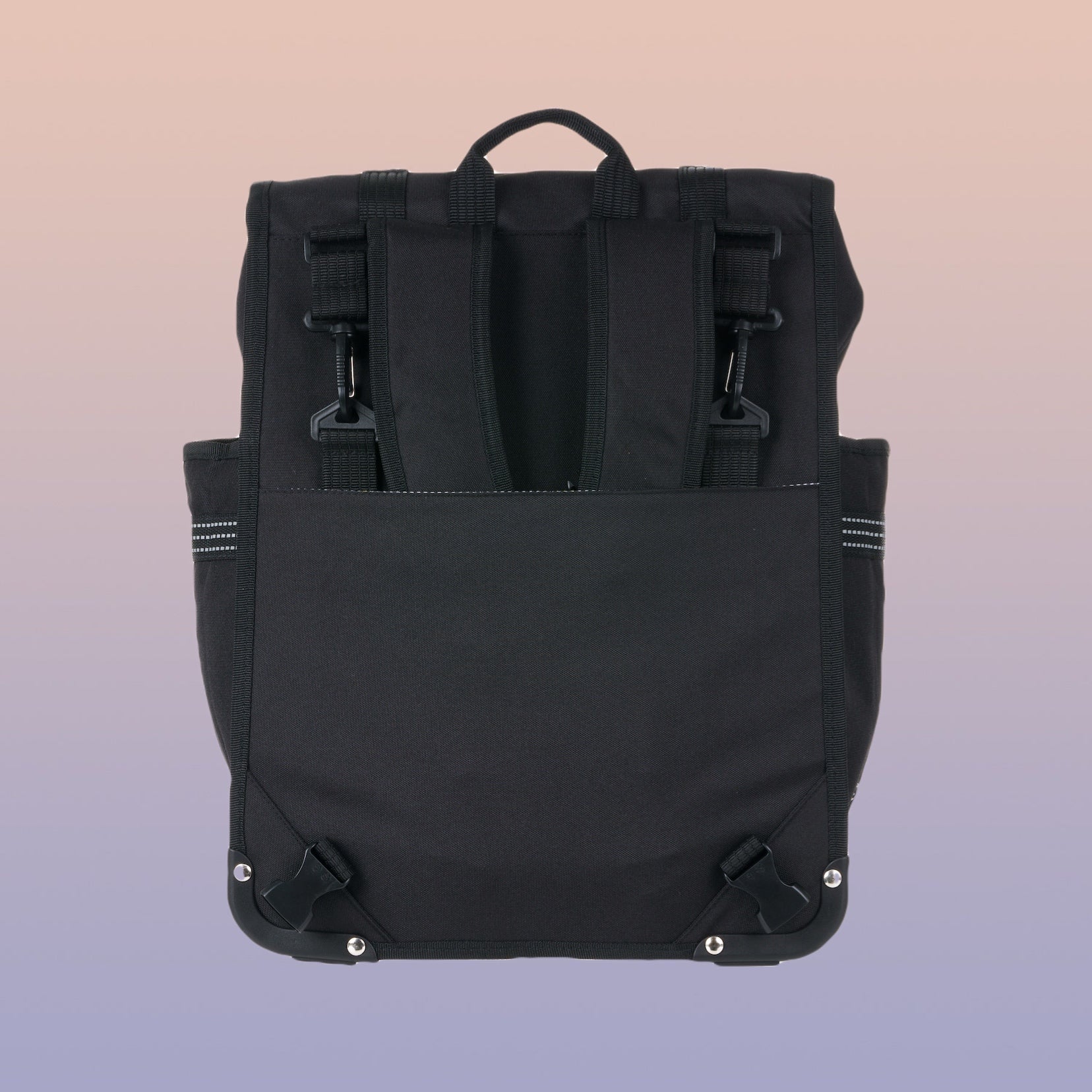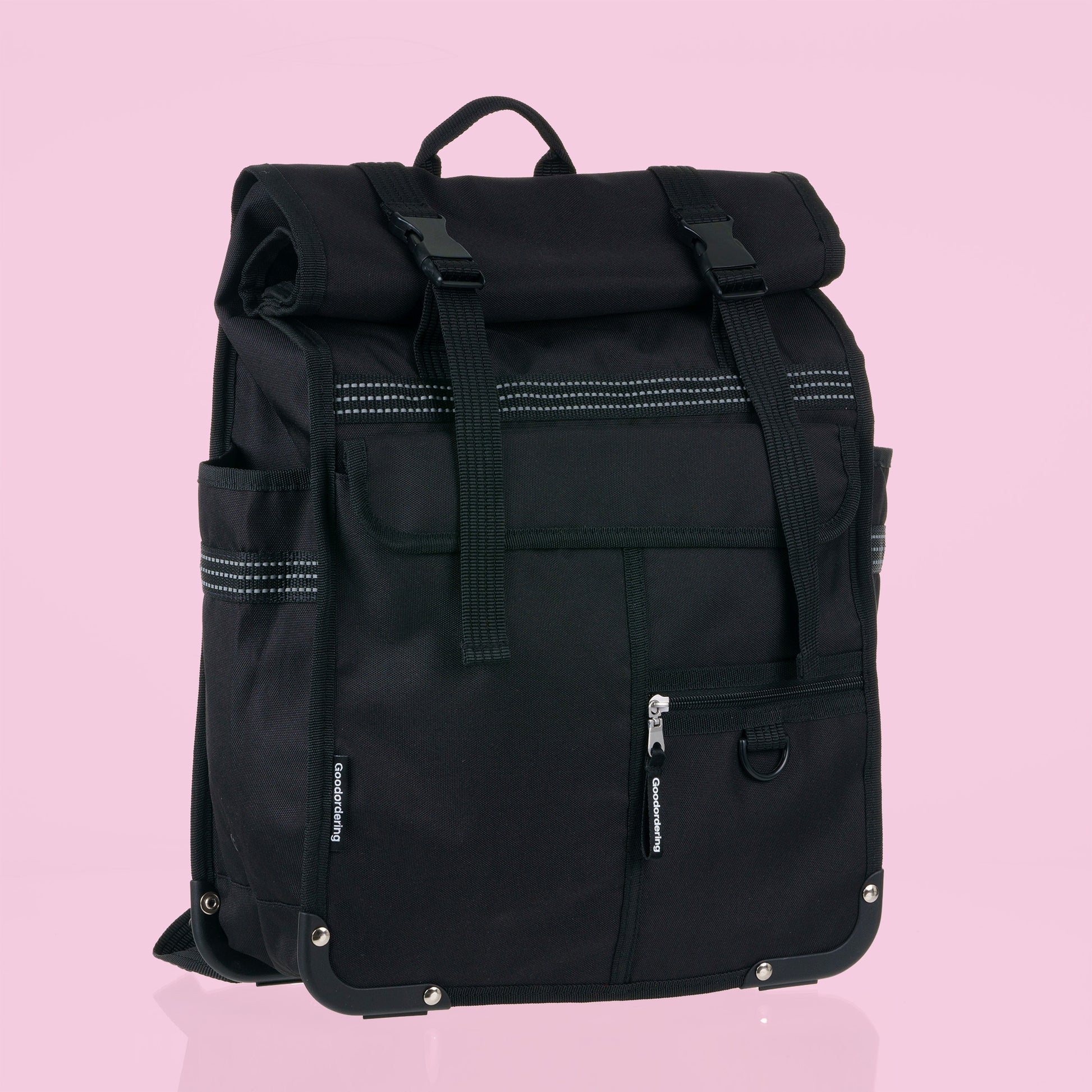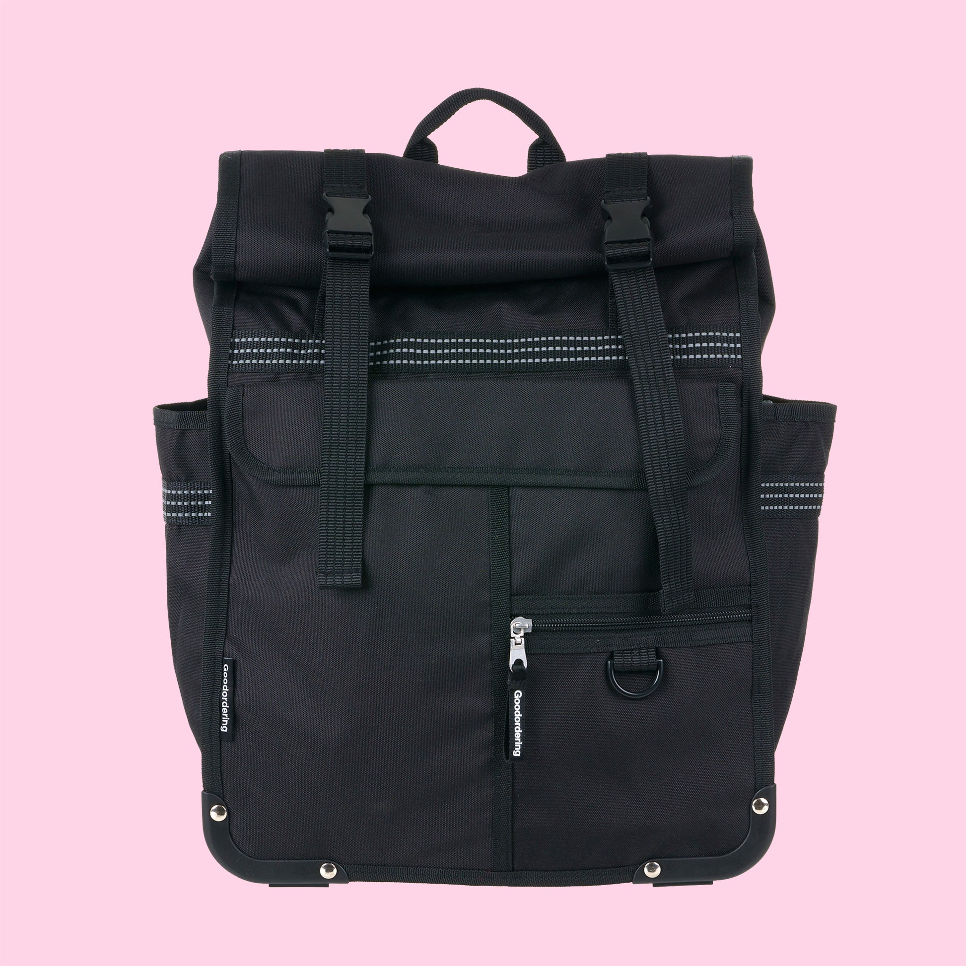Eco nylon Monochrome Rolltop Backpack Black pannier two in one