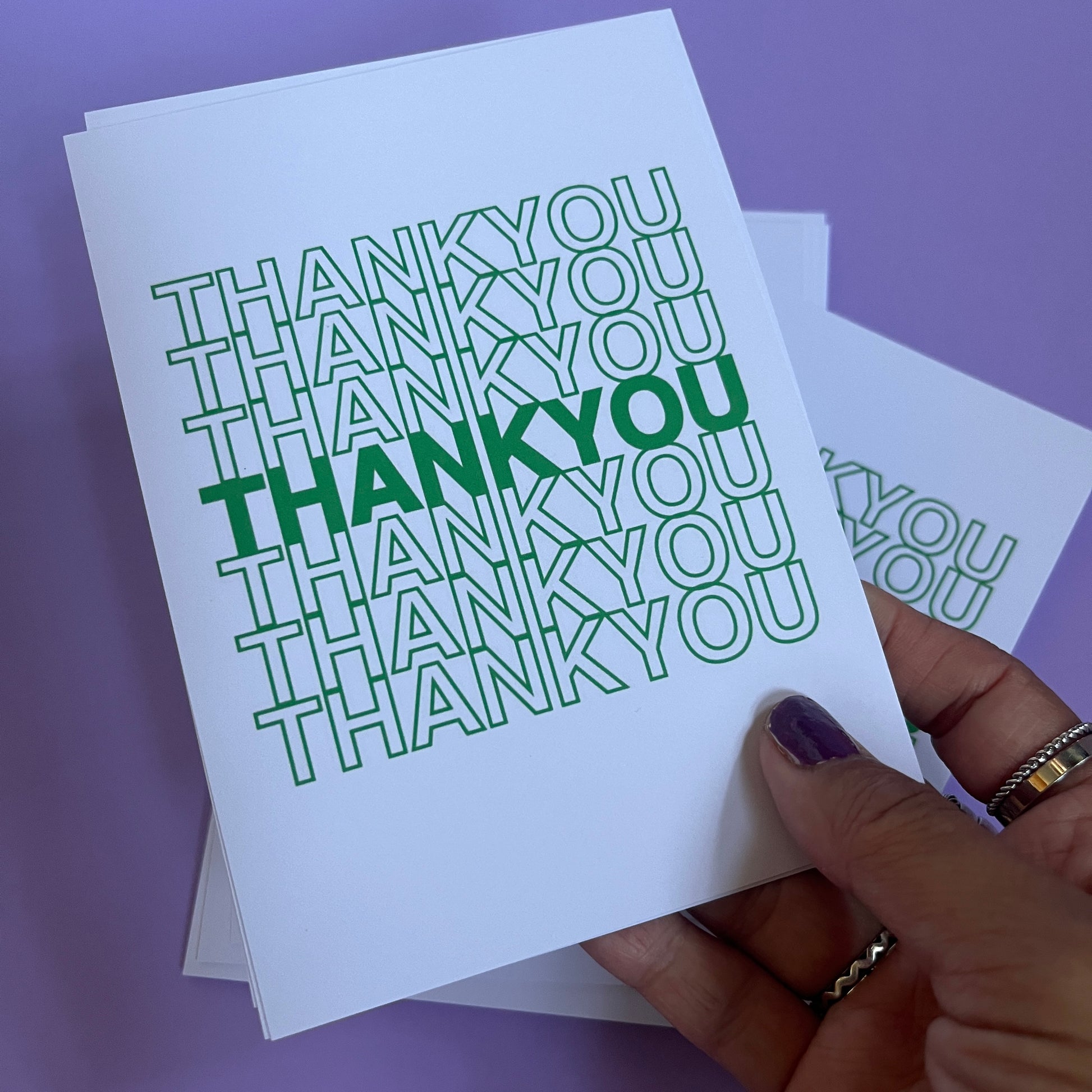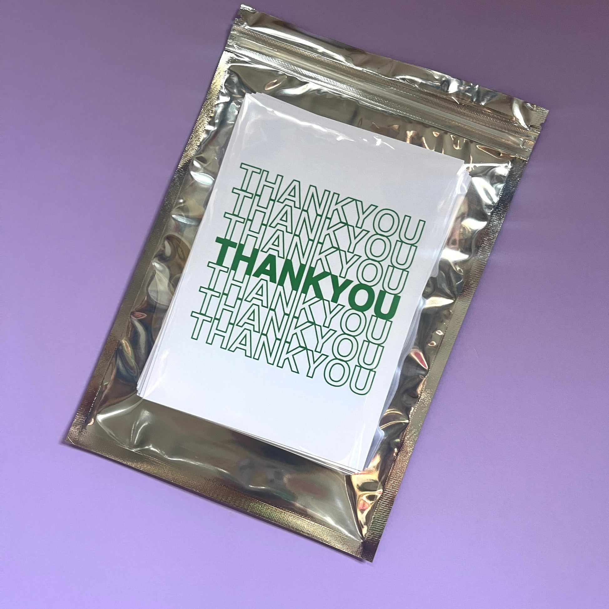 Uncoated thankyou post card printed and made in the UK, designed by Jacqui at Goodordering.