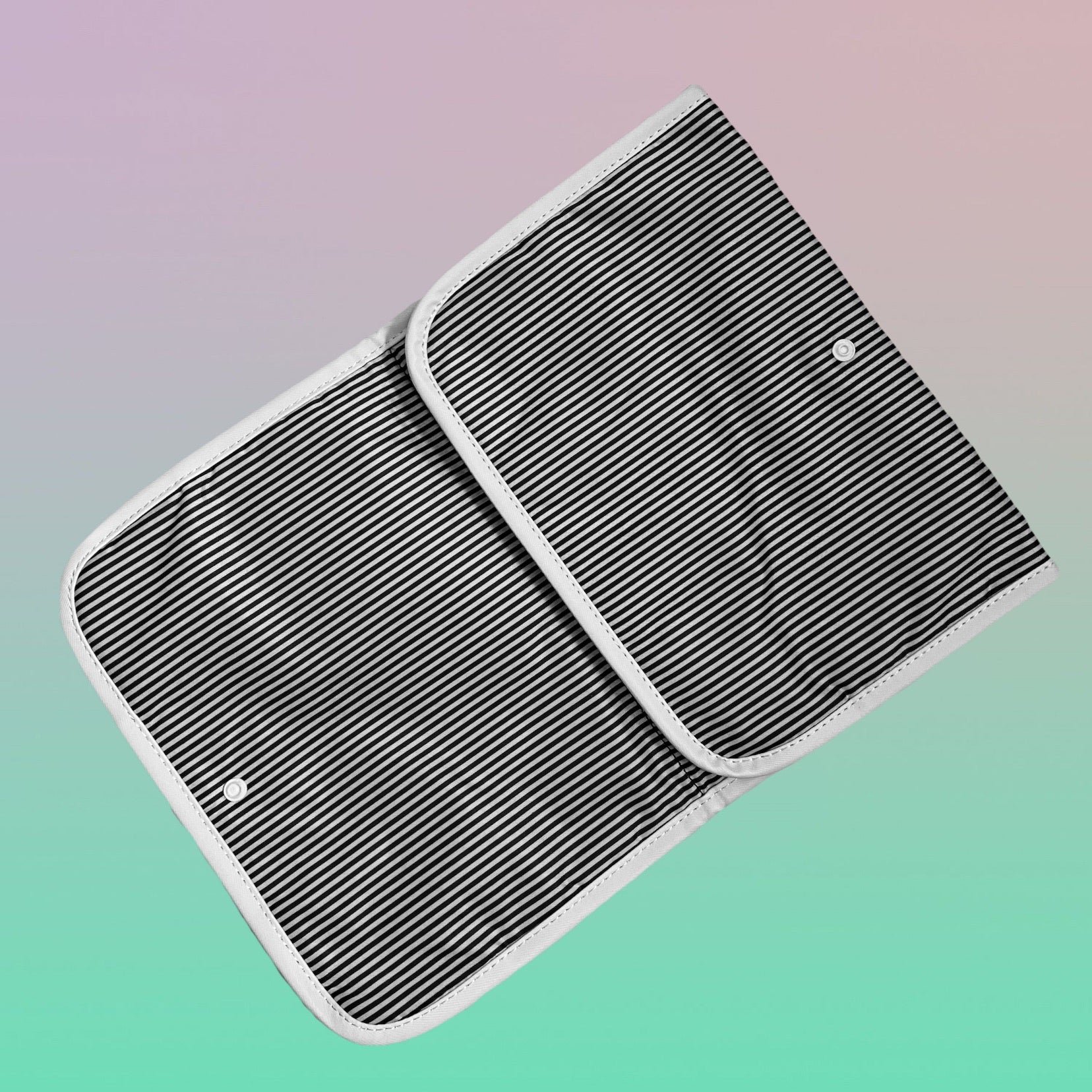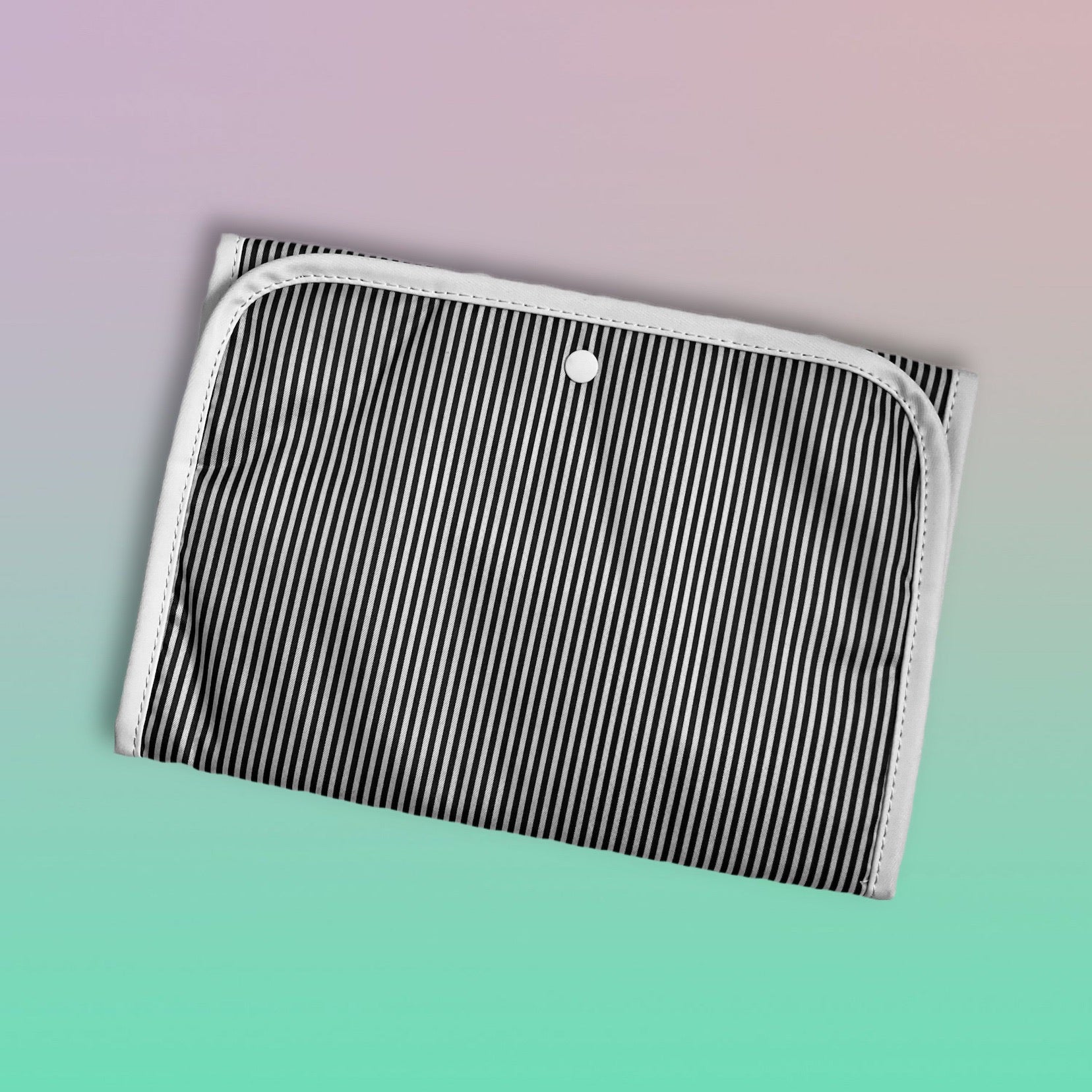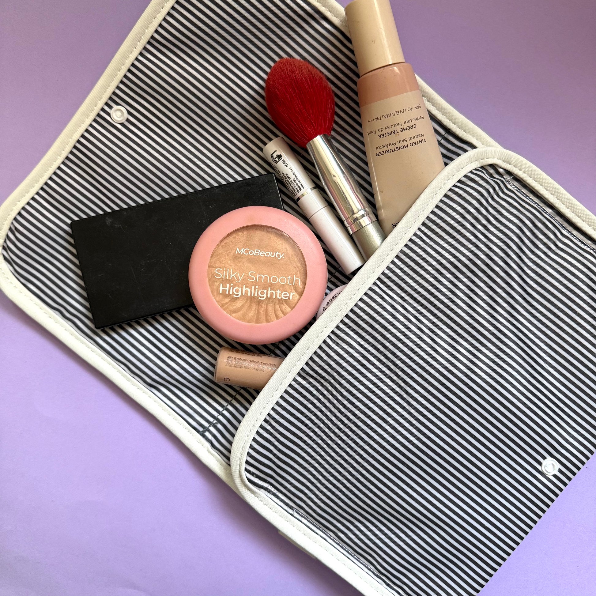 This padded flat pouch with press stud closure is versatile and has a variety of uses such as for make up, jewellery, pens and pencils and other small items.